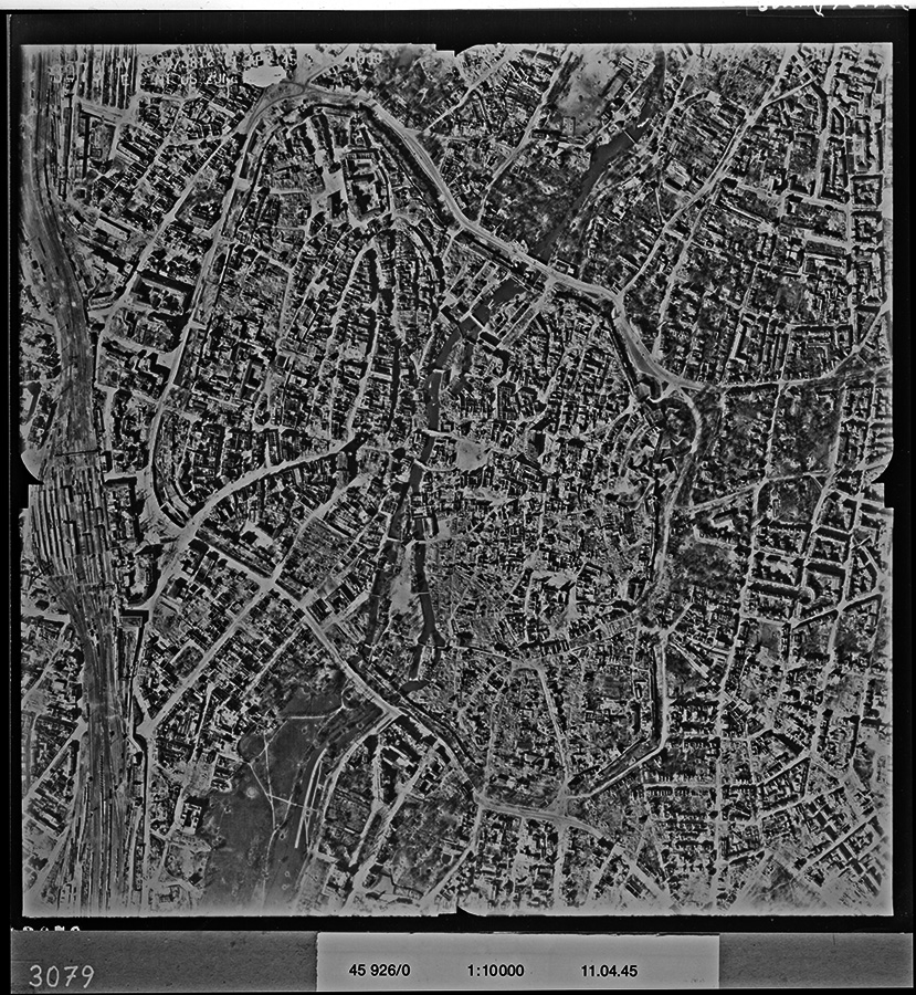Die Ausstellung erinnert an die Zerstörung Nürnbergs - anhand von 3D-Luftbildern (Anaglyphenbilder) und historischen Aufnahmen.
